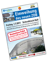 Gegen 16:00 Uhr gibt es den offiziellen Festakt zur Einweihung des neuen ZOBs mit Ansprache von Oberbürgermeister Hermann-Josef Pelgrim, Grußworten von Dieter Seibold (Vertreter des Regierungspräsidium Stuttgart) und Ingrid Kühnel (Geschäftsführerin des KreisVerkehrs), sowie Erläuterungen zum Bauwerk von Jürgen Marquardt (Architekt).